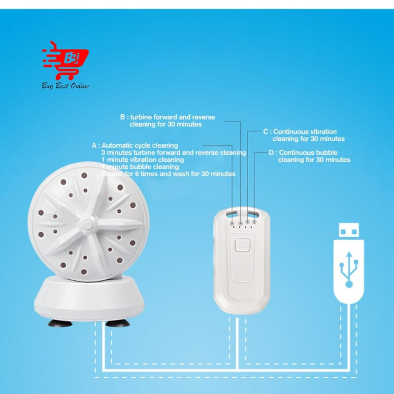 Detail: Ultrasonic Turbo Washing Machine Portable Travel Washer Air Bubble And Rotating Mini Ultrasonic Semi-Automatic Small Washing Machine