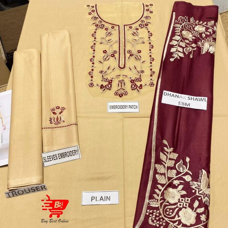 Unstitched Dhanak Embroidered Suit